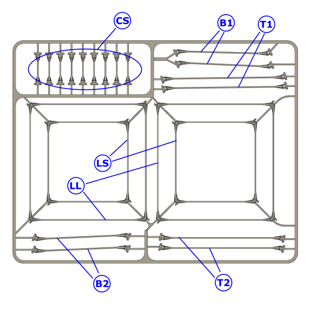 Insert top strings (T1s and T2s) into the top elements (TL and TS):