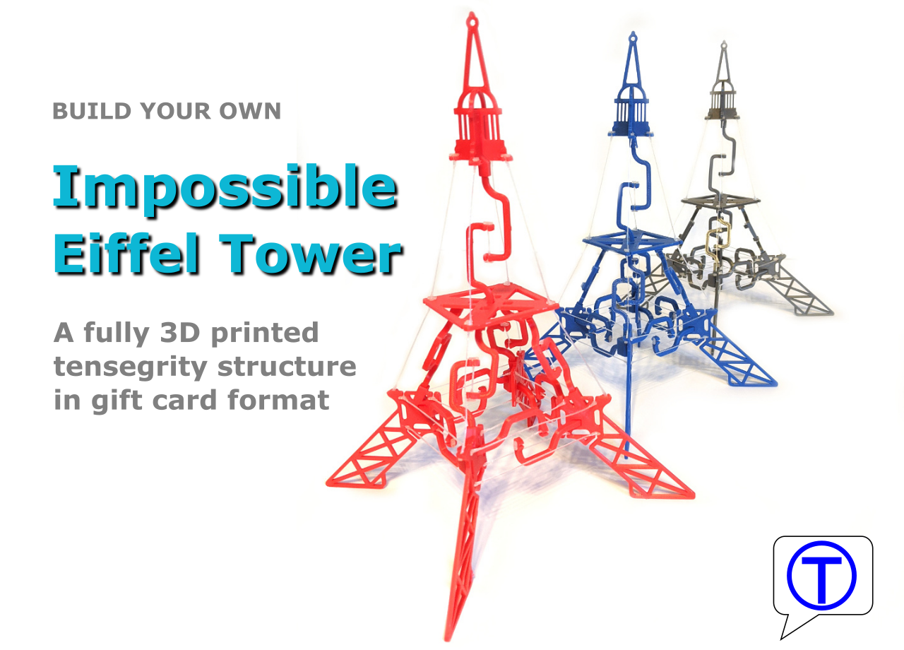 How to build your own impossible Eiffel tower – a fully 3D printed tensegrity structure in a gift-card format.